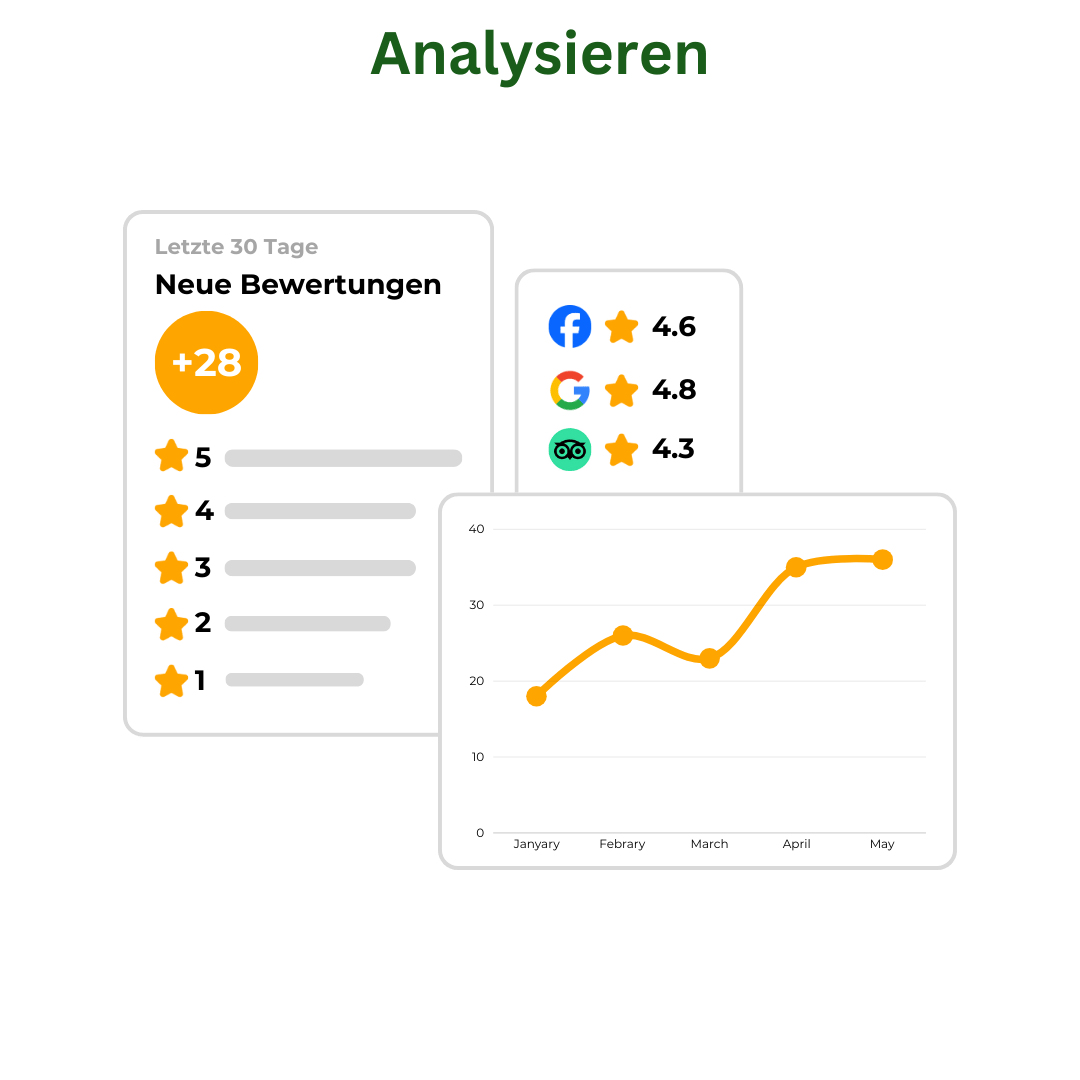 Verwalten Sie alle Ihre Online Bewertungen, fordern Sie Bewertungen an, präsentieren Sie Ihr positives Feedback und verbessern Sie Ihre Gesamtbewertung indem Sie schlechte Bewertungen filtern.