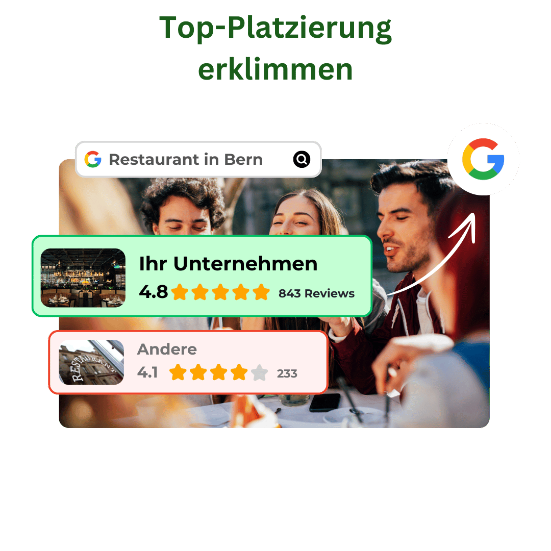 Google betrachtet die Anzahl und Qualität der Bewertungen als wichtigen Ranking-Faktor. Mehr positive Bewertungen signalisieren Google, dass Ihr Unternehmen vertrauenswürdig und beliebt ist, was Ihr Ranking verbessert. Es ist besonders wichtig, dass kontinuierlich neue Bewertungen eingehen und nicht alle auf einmal, da Google regelmässiges Feedback bevorzugt und dies als Zeichen für ein aktives und relevantes Unternehmen wertet. Mit Rateflow können Sie gezielte Kampagnen erstellen, um Ihre Kunden zur Abgabe positiver Bewertungen zu motivieren.