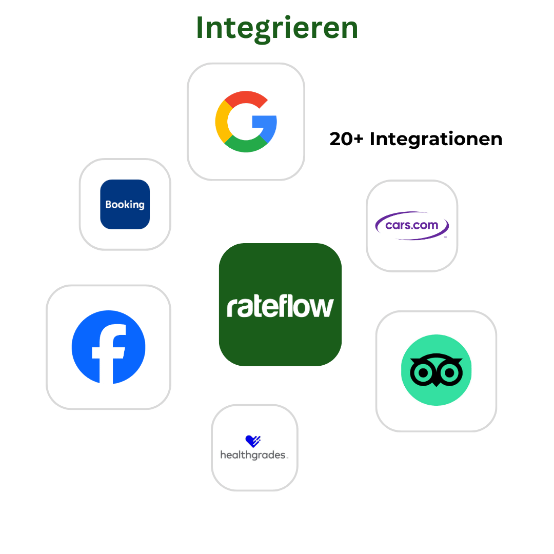 Integrieren Sie über 20 Bewertungsplattformen in Rateflow. Sobald Ihre Bewertungen eintrudeln, haben Sie eine Plattform, um alle Ihre Bewertungen von einem einzigen Dashboard aus zu überwachen und zu beantworten.