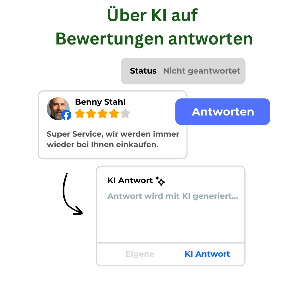 Teilen Sie Ihre eigene automatisch generierte Bewertungsseite, um Bewertungen zu generieren.