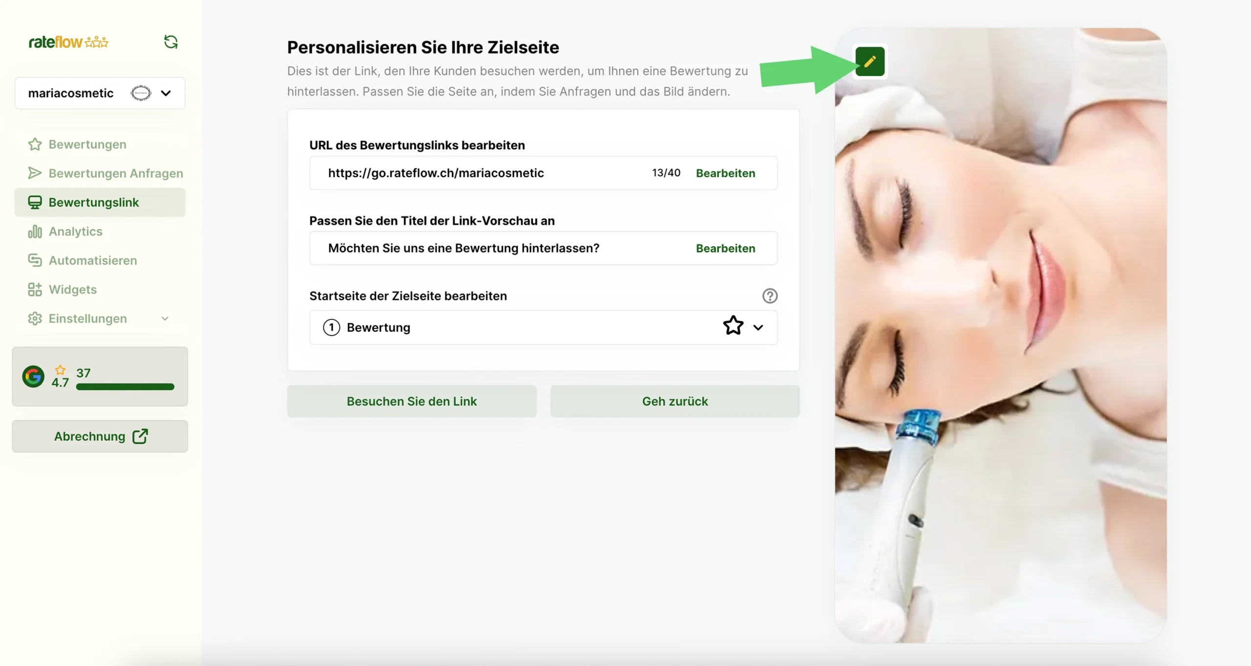 1. Bearbeiten Sie die URL Ihres Bewertungslinks.