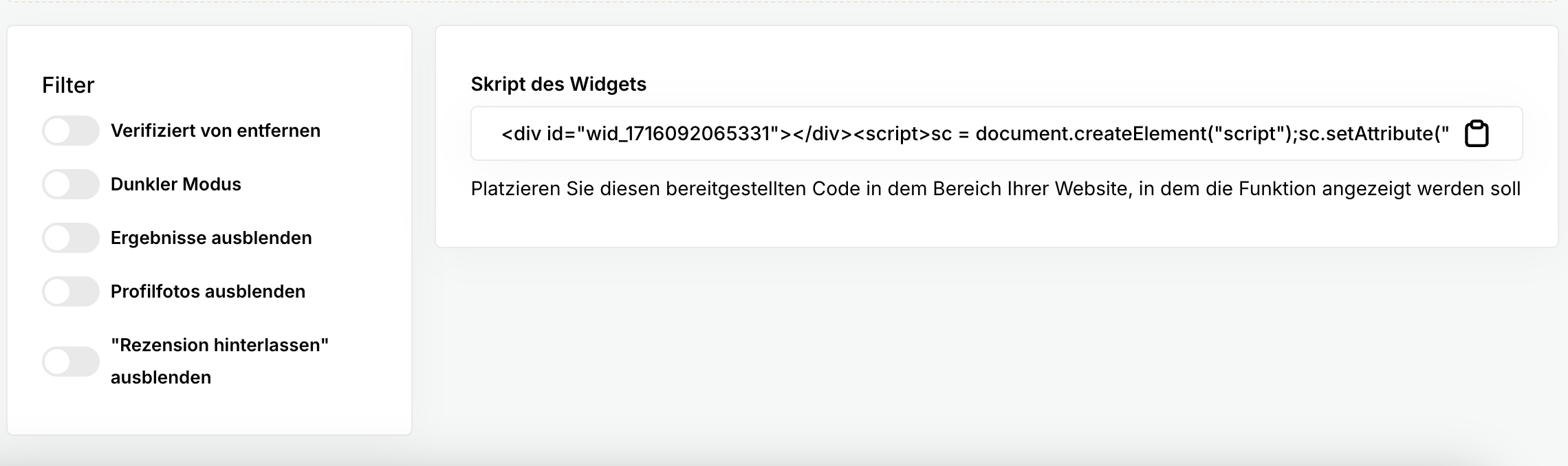 Scrollen Sie einfach nach unten zum HTML-Code-Abschnitt, kopieren Sie den gesamten Code und fügen Sie ihn in Ihre Website ein. Kontaktieren Sie uns, wenn Sie Hilfe bei der Installation Ihrer Widgets benötigen.