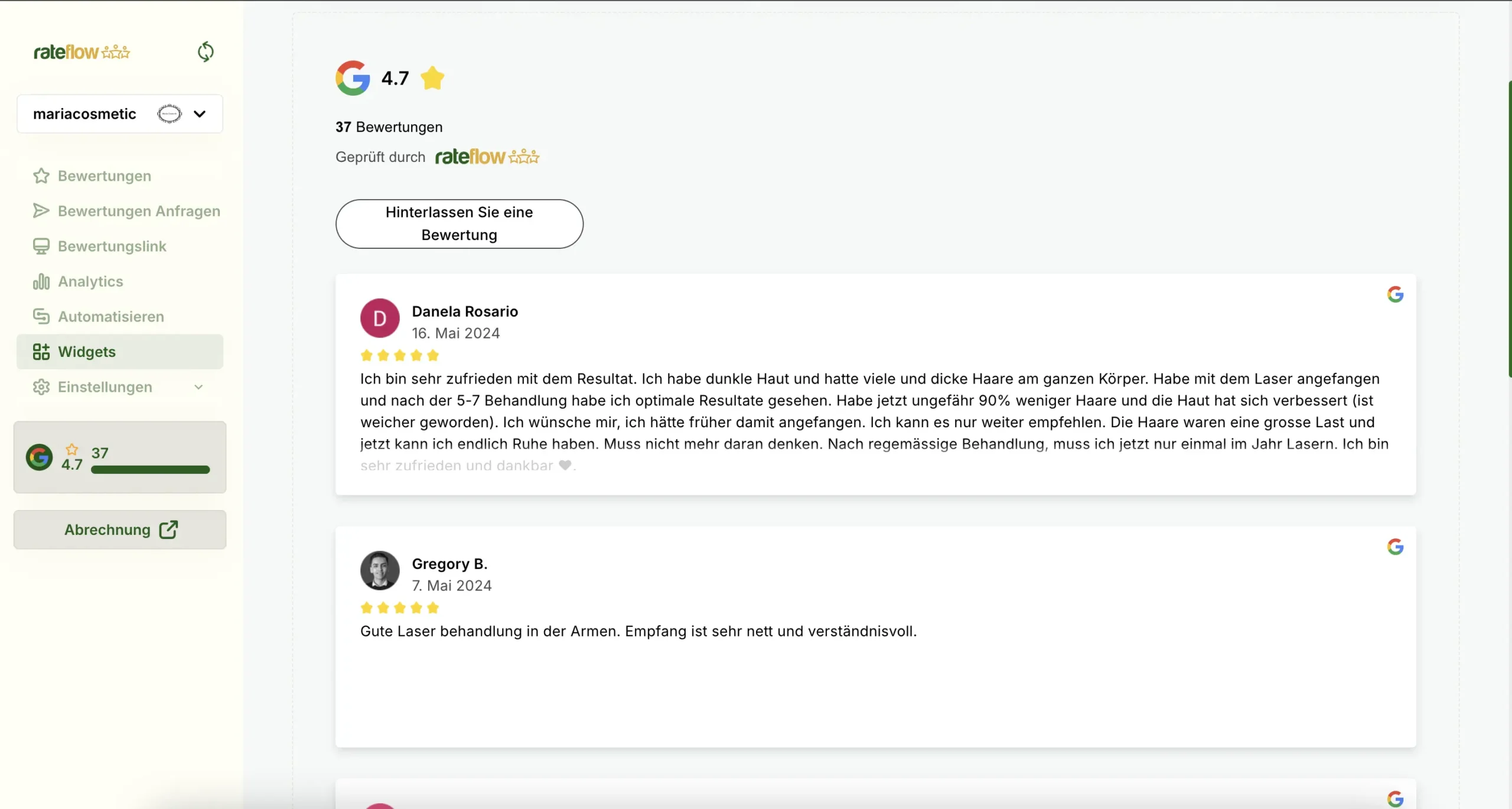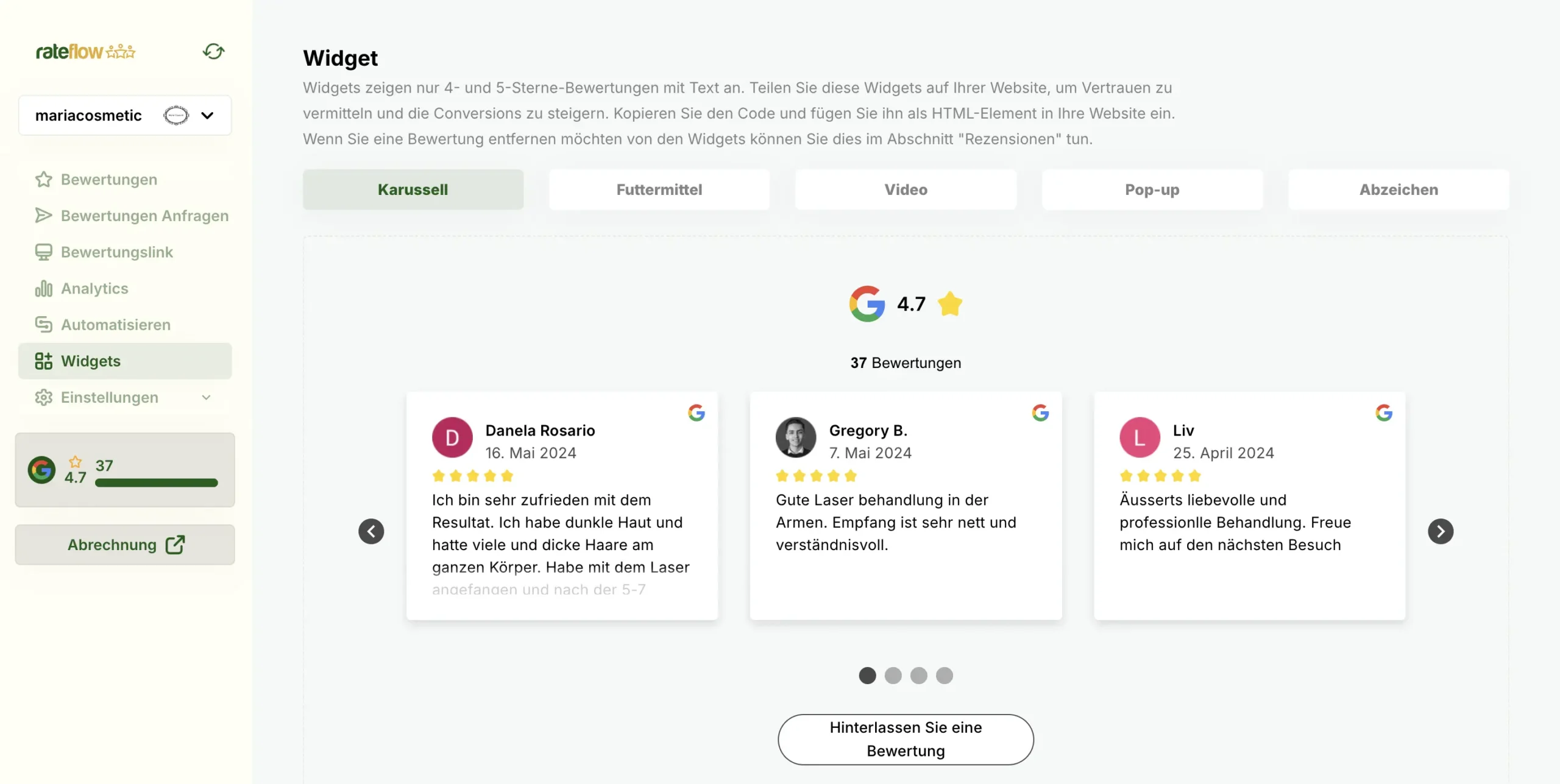 Präsentieren Sie Ihre großartigen Bewertungen auf Ihrer Website oder in sozialen Medien.